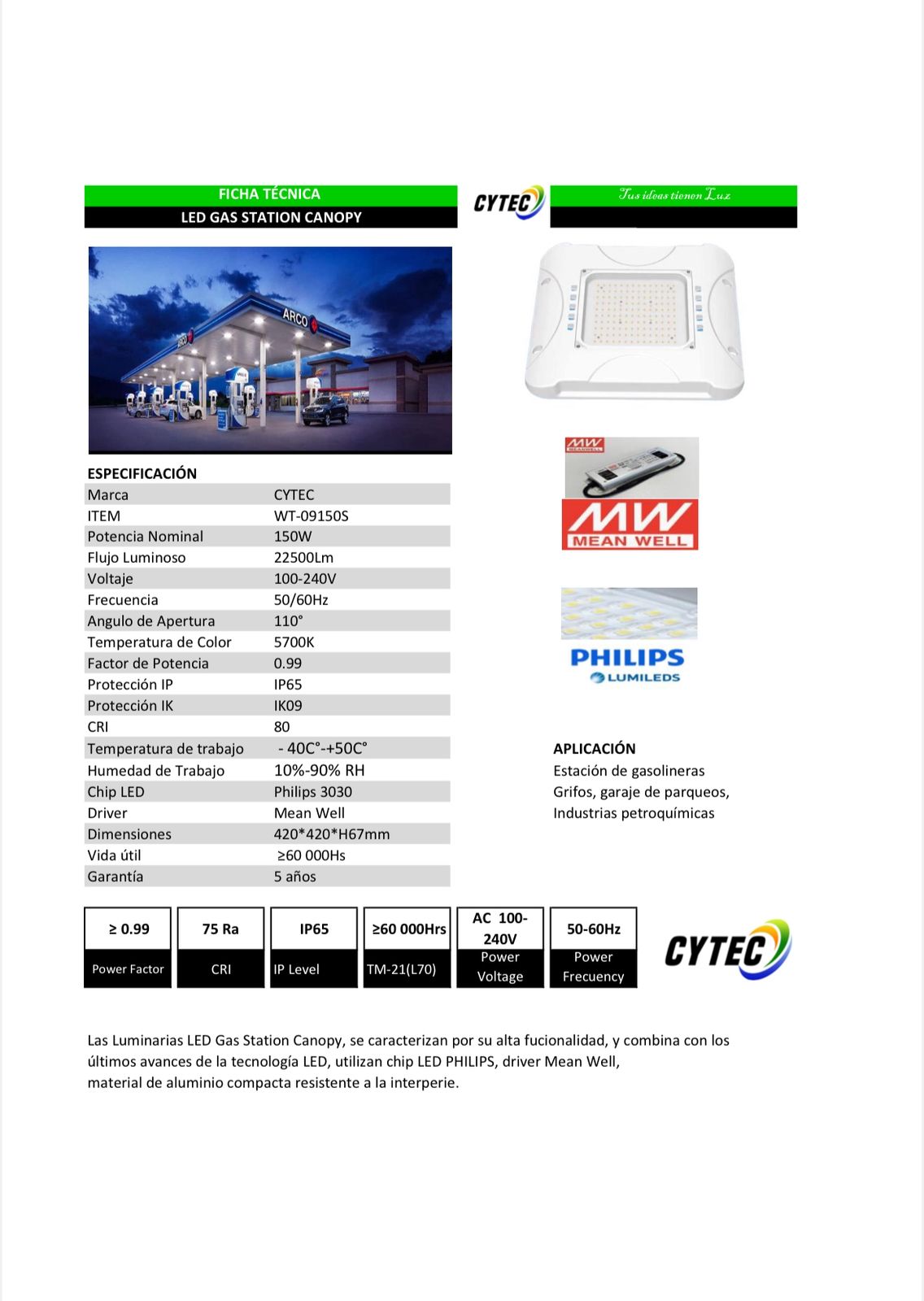 Las luminarias LED Gas Station Canopy,se caracterizan por su funcionalidad que combina con los últimos avances de la tecnologÍa,utilizan chip led philips,driver Mean Well.Material de aluminio compacto resistente a la interperie.