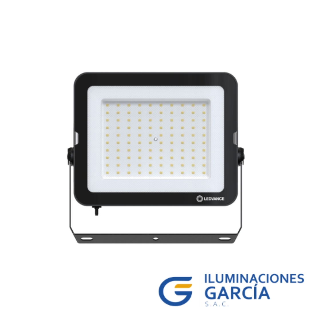 Reflector LED floodlight, potencia de 150W,cuenta con 15000lm, temperatura de color 5000K, tension de operación de 100-277 V, índice de reproducción cromática >80, grado de proteccion IP65/IK06, vida útil de 20000hrs.